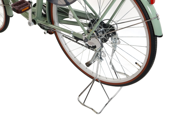 各所にステンレスパーツを採用したサビに強い自転車。ハンドル、ステム、シートポストだけでなく、泥除けのステーやカゴのステーもステンレス仕様。カゴも樹脂製でサビしらず。荷物もたっぷり載せることができます。フレームは低床設計で乗り降りがしやすく、キャリアはチャイルドシートも取り付けが可能なクラスS(30kg)を採用。幅広のスタンドは安定感抜群で立てると同時にロックがかかる便利な仕様です。