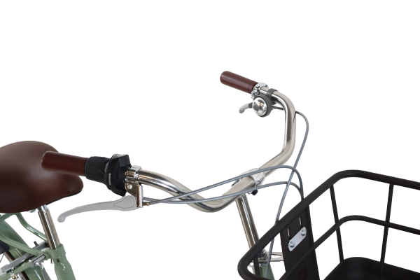 サビに強いステンレス仕様のハンドル、ステムを採用、ゆったりと乗れるおしゃれなプロムナード形状のハンドルバーも魅力的。
