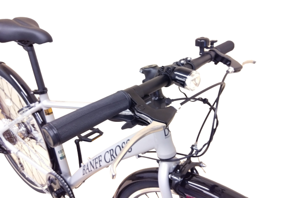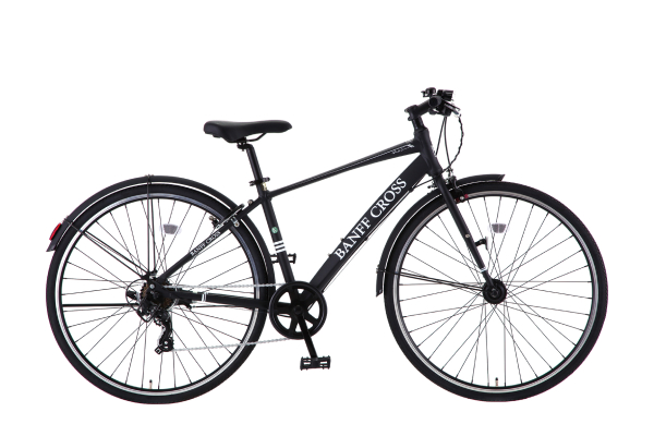 バンフクロスは通勤・通学やちょっとしたお出掛けに欲しい機能が満載のクロスバイクです。 耐久性が高く軽量なアルミフレームに、様々な場面でも安心して走れるSHIMANO製の7段変速を採用しております。 ハンドルにはコンパクトな常時点灯LEDライトが付いており、普段使いに必須のキックスタンドも標準装備です!