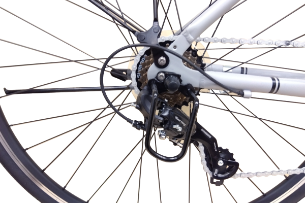 一般的にクロスバイクには泥除けが付いていない車種が多い中、こちらのモデルでは前後泥除けを標準装備。