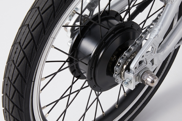 リアホイールに搭載された軽量・高トルクモーターの組み合わせにより、想像を超えるパワーを実現。