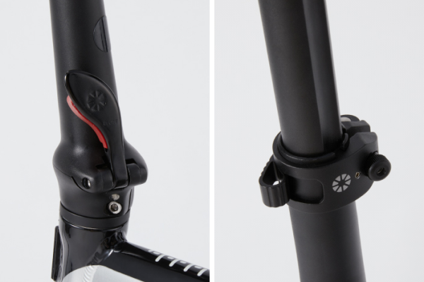 トップチューブとBBをケーブルでつなぐことによりフレームにトライアングルを形成。ヒンジ部分を中心にフレームへの負荷を軽減させて強度と耐久性を高める効果がある。