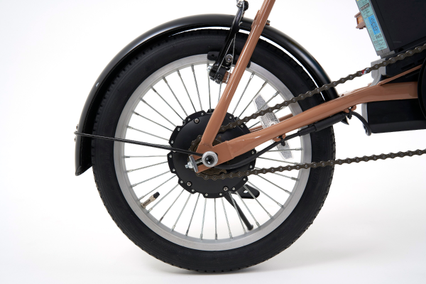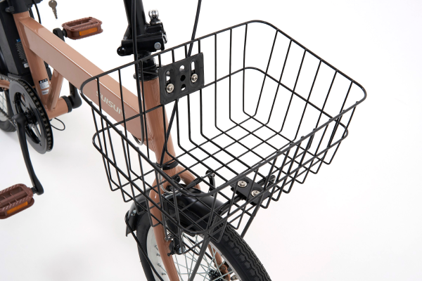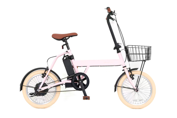 機能を省いてコストを下げた潔い仕様の電動アシスト自転車です。小型でハンドルポストを折りたたむと横幅も縮まるため玄関先のスペースに置くことも可能です。