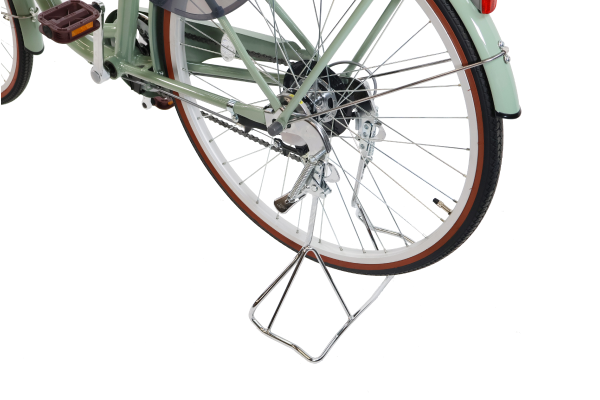各所にステンレスパーツを採用したサビに強い自転車。ハンドル、ステム、シートポストだけでなく、泥除けのステーやカゴのステーもステンレス仕様。カゴも樹脂製でサビしらず。荷物もたっぷり載せることができます。フレームは低床設計で乗り降りがしやすく、幅広のスタンドは安定感抜群で立てると同時にロックがかかる便利な仕様でお子様を乗せる際も安心です。