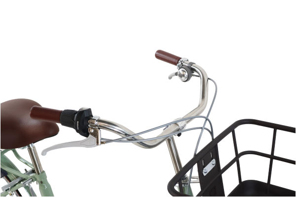 サビに強いステンレス仕様のハンドル、ステムを採用、ゆったりと乗れるおしゃれなプロムナード形状のハンドルバーも魅力的。