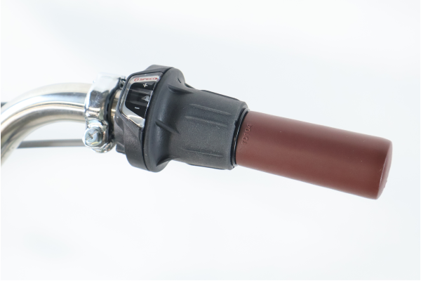 ハンドルを握ったままギアを変更できる、シマノ製のグリップシフトを採用。