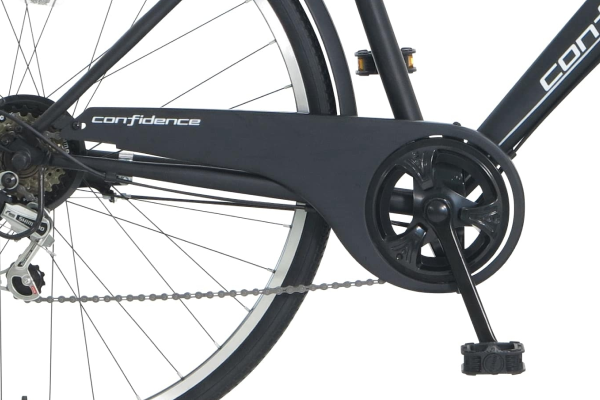 2024年度より新登場したコンフィデンスシリーズは、通勤通学や街乗りの際に便利な機能をフル装備です!LEDオートライト、前カゴ・泥除け・後輪錠・スタンド・チェーンガードを搭載しており様々なシーンに対応可能。変速は安心のシマノ製6段変速で、坂道から平坦な道まで状況に応じて快適に走ることができます。