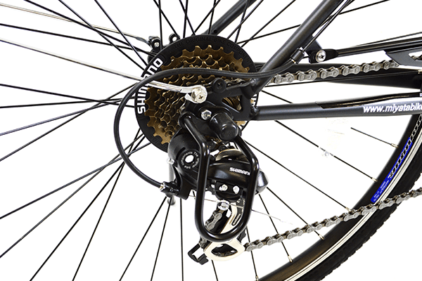 坂道でも軽快な走りが楽しめる、信頼性の高いシマノ製外装7段変速を装備。