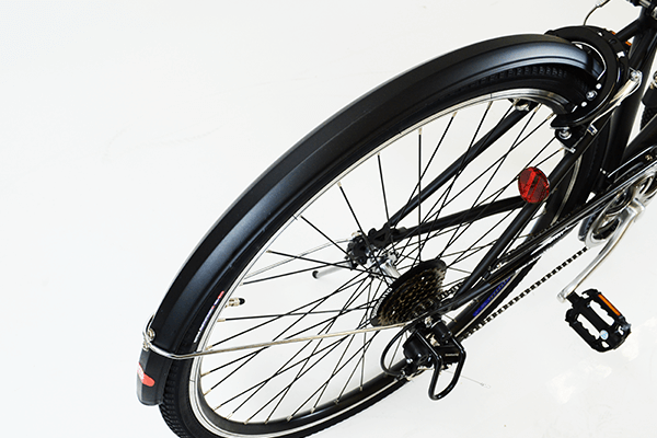 クロスバイクにオートライト、大型バスケット、泥除けなどを装備した通勤・通学に使える一台。