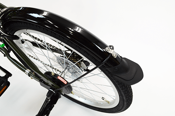 普段使いには必須の泥除け。路面が濡れていても安心して走行可能。