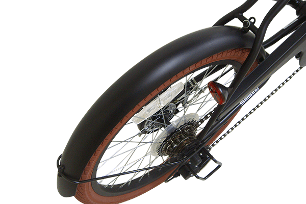 普段使いには必須の泥除け。路面が濡れていても安心して走行可能。