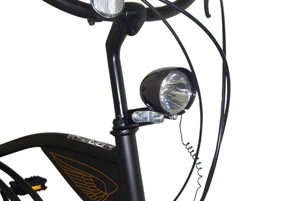 ブラウンで統一されたパーツに砲弾型ライト、特徴的なフレーム形状につや消しカラー。乗っているだけでかっこいい、そんな自転車です。深いカーブを描くハンドルは上体が起き、リラックスしたポジションをとっていただけます。