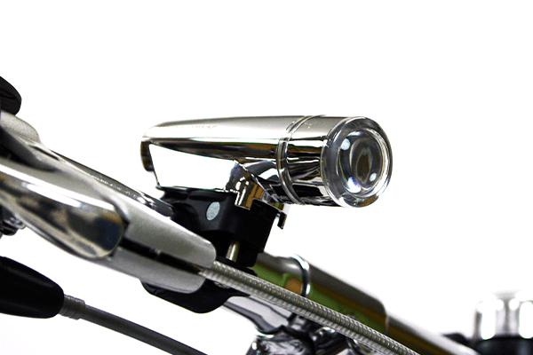 ハンドル部分に取り付けられた電池式のLEDライト。