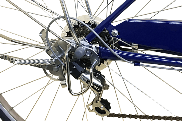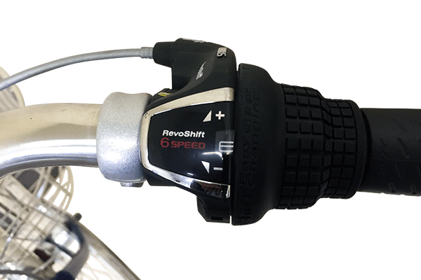 どんな道でも、快適に走れる信頼のシマノ製6段変速機を搭載。
