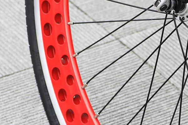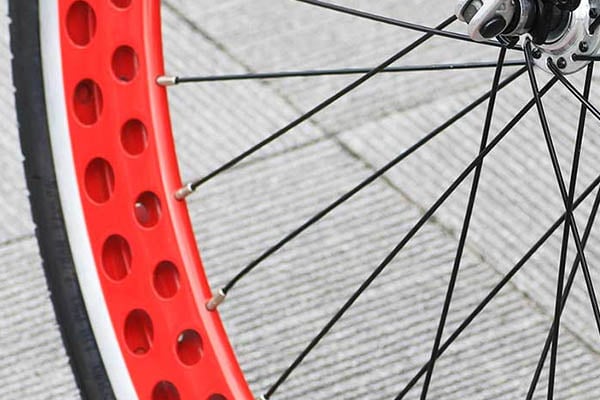 60mmの重厚感を感じる分厚いディープリムに穴を空けた個性的なリムを採用しました。