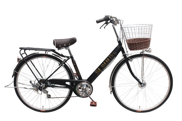 極厚チューブで99%パンクしない!籐風カゴのオシャレなシティサイクル。