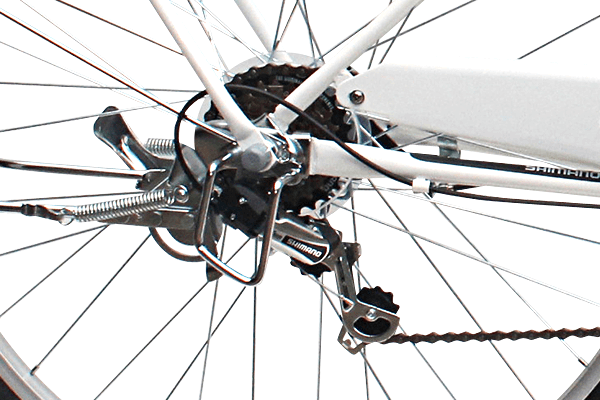 坂道でも軽快な走りが楽しめる、信頼性の高いシマノ製外装6段変速を装備。