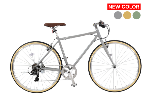 センスのいいクロスバイクに乗りたい。そんな初心者の方へ向けて、caviteは作られました。細身のフレーム、落ち着いたクラシカルなカラー。見た目はこだわりながらも乗りやすい機能を充実させました。走行場所にあわせて変えられる7段変速。中央があいたサドルはオシリにやさしい。制動性の高いVブレーキに、夜間走行を助ける反射板を標準装備。通勤もカフェへの移動も。caviteならあなたの生活を、きっとオシャレに彩ります。※口コミを元にクランクをより扱いやすいギア比にリニューアルしました。46Tクランクモデル。