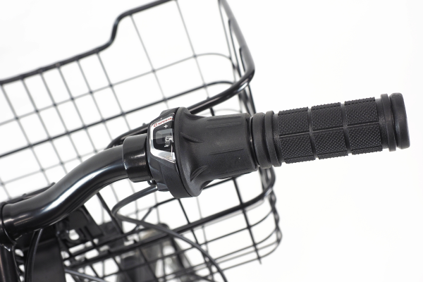 効きの良いVブレーキやフレーム形状はクロスバイク、カゴや泥除け等が付いていて使い勝手はシティサイクルのよう。さらにLEDオートライトが搭載されているので夜つけ忘れの心配もなく、ペダルも重くなりません。