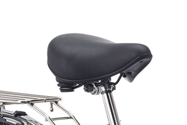 疲れにくくおしりにやさしいサドル形状。長距離走行の負担や段差の衝撃を軽減します。