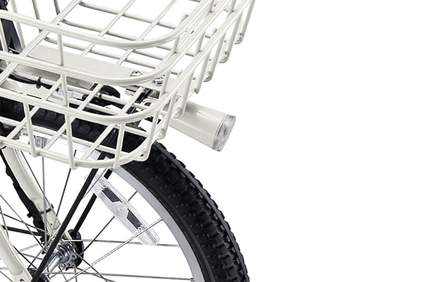 コンパクトな車体でありながら買い物した荷物もスッポリ入る大容量バスケットを搭載。カゴサイズ(底面)、縦:29cm、横:42cm、深さ:18cm。