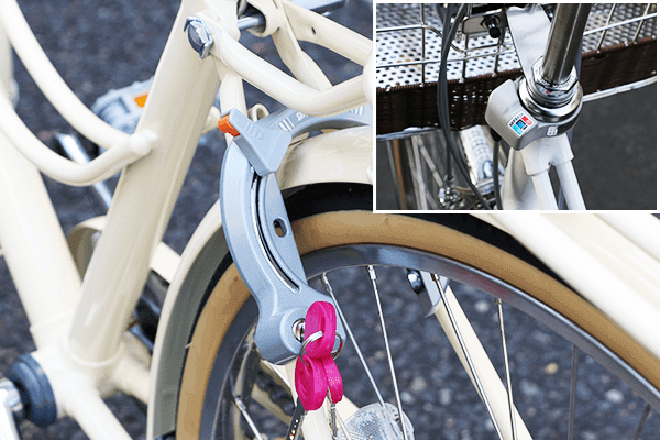 後輪に鍵をかけるとハンドルも同時にロック!盗難対策もしっかり考えられています。