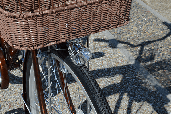 耐パンクタイヤ&肉厚チューブのタイヤを装備した、デザインにもこだわったワンランク上の自転車です。パッと目を引く籐風前カゴと、カゴ下の砲弾型LEDオートライトでクラシカルな雰囲気に。通常のタイヤと比べてチューブが肉厚なのでパンクに強く、摩擦ですり減りにくい素材を使用しているため長距離の走行にも適しています。また、暗くなると自動点灯するLEDオートライトに加えて、前後に反射板が搭載されているので、車やオートバイからの視認性が高く、夜間の走行も安心です。長く使っても音鳴りしにくいローラーブレーキは、メンテナンスの手間が少ないので通勤通学やお買い物で毎日のように利用するのにぴったり。坂道が快適になるシマノ製の外装6段変速は、シフトレバー式のためハンドルを握ったまま簡単にギアチェンジができます。横幅なんと39.5cmの大きめ籐風前カゴは、通勤バッグやリュックがすっぽり入ります。見た目と機能にとことんこだわった、万能シティサイクルです。