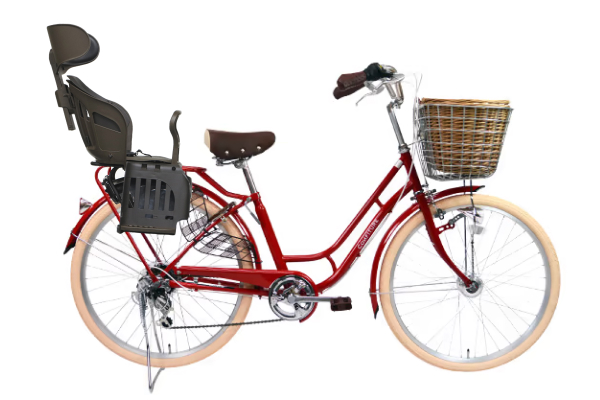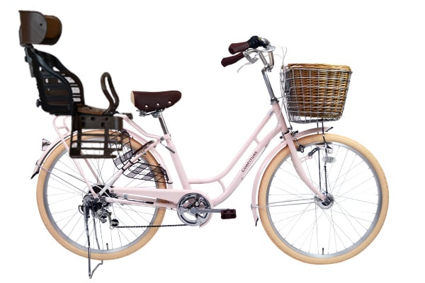 「いい自転車を、もっと手に入れやすく」cyma商品開発部第一弾女性のための自転車のリアキャリアに、衝撃吸収パッドが頭部周りに付いたOGK製チャイルドシートを搭載!万が一の転倒から大事なお子様を守ってくれます。300万人のユーザーが使用している 女性向け体調管理アプリ・サイト『ラルーン』と製作を行い、実際の女性の声を基に「使いやすさ」と「かわいさ」どちらも詰め込みました。女性が自転車で最も注目するカゴは、A4サイズのカバンが楽に入る大容量ワイドカゴ。可愛さを突き詰めた自然素材の編みカゴはナチュラルなカバーがついていて、ひったくり防止に。他にも、女性の「使いやすさ」にこだわり、低床設計、6段変速の変速機、暗闇でも明るいLEDオートライト、ふかふかの大型サドル、ドレスガードと嬉しい機能がいっぱい。全てのパーツをブラウンで統一し、女性らしいフレームカラーで仕上げました。