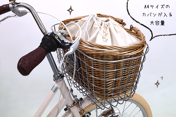 A4サイズのカバンが楽に入り、ナチュナルカバー付きでひったくり防止に。