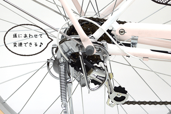 どんな道でも、快適に走れる信頼のシマノ製6段変速機を搭載。