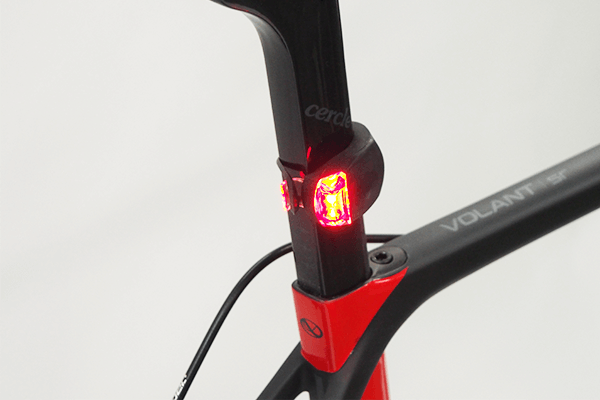 エアロ形状のフレームにも装備可能なゴムバンドタイプのライトが付属します。