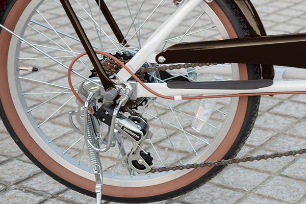 毎日の通勤通学やお買い物に最適で、年齢性別を問わず人気のシティサイクル”Kukka-Maaria”のミニベロです。シティサイクルと同様のパーツを使っているので、小さい車体でも、不便を感じることはありません。信頼性の高いシマノ製6段変速を装備しているので、坂道などのアップダウンに応じてスムーズに走ることができます。LEDオートライトは暗くなると自動で点灯するので、つけ忘れの心配もありません。グレードが高いシティサイクルでよく使われるローラーブレーキは、音鳴りしにくく長寿命なのが特徴。また、手前にゆるくカーブしたセミアップハンドルは、自然で楽な姿勢で乗ることが出来ます。ゆったり乗りたい時も急ぎたい時も、いつでも快適に乗ることができるミニベロです。そして、毎日使う自転車で一番気になるのは「安全」ですよね。この自転車は、7万回以上のフレーム耐久検査を実施しているので、安心して長くお使いいただけます。