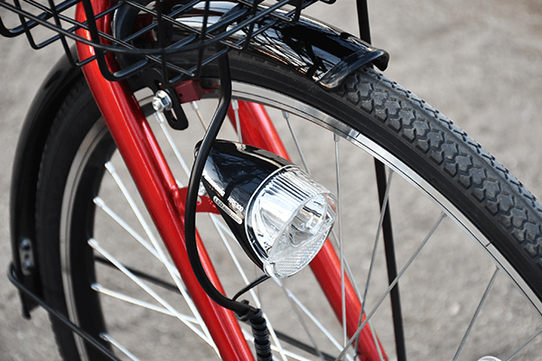 暗くなったら自動で点くライト付き。LEDで明るさも十分!