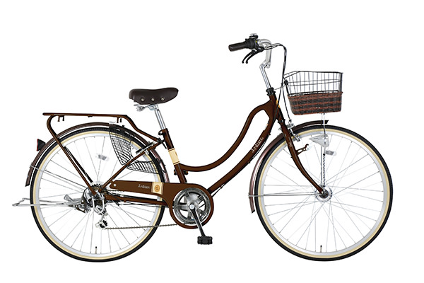 ヨーロピアン調のデザインと優雅に流れるようなフレーム形状が特徴の、充実機能のシティサイクルです。シマノ製6段変速が搭載されているので、坂道がぐんと楽になるのはもちろん、シーンに合わせて快適に走ることができます。大きめの籐風カゴは荷物がたくさん入るので、帰り道にスーパーによっても大丈夫。ほかにも、乗り心地の良いテリー型サドル、暗くなると自動で点灯するオートライトなど、毎日お使い頂くための機能をしっかり装備しています。ゆったりした自然体で乗れるセミアップハンドルを採用しているので、低速でも安定して運転しやすいです。さびにくくて軽量なアルミ製のハンドルをはじめ、細かなパーツも品質の良いものを採用しました。そして、毎日使うからこそ「安全」な自転車を選びたいですよね。この自転車は、自転車協会が定めた安全基準に合格しBAAマークも取得しているので、長く安心してお乗りいただけ ます。高いデザイン性と使い心地を兼ね揃えた一台です。