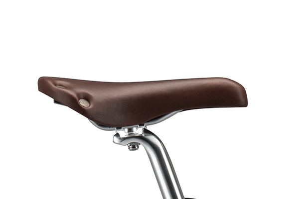 乗るほどに深みが出るレザーテイストの鋲付きサドル。