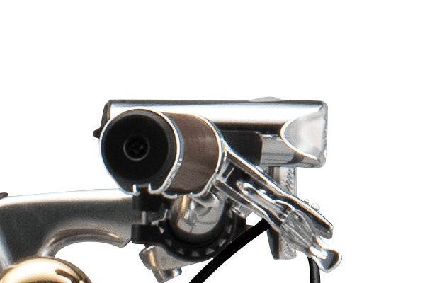 クラシカルな雰囲気を崩さない、スリムなLED電池式ライトを標準装備。