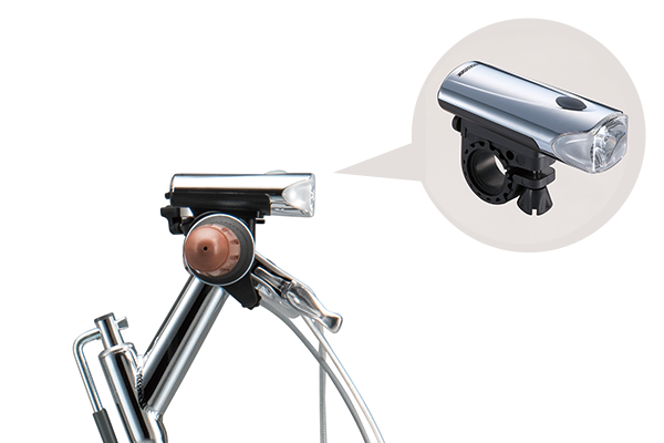 折りたたみ自転車では珍しい、ライトも標準装備。夜道でも明るく照らすLEDバッテリーライトを採用。