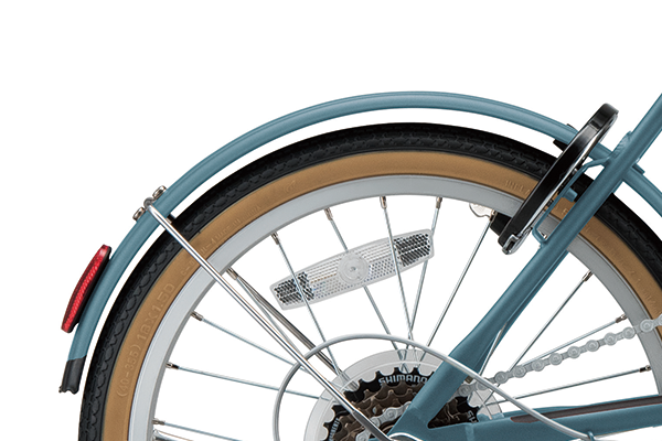折りたたみ自転車でありながら、細身でシンプルなフレームに色合い、この絶妙な感じがなんともオシャレ。見た目はもちろんですが、リング錠やスタンド、泥除けがついているのもポイントが高いですよね。玄関に折りたたんで置いてもインテリアにもなってしまう、とにかく使える一台です。