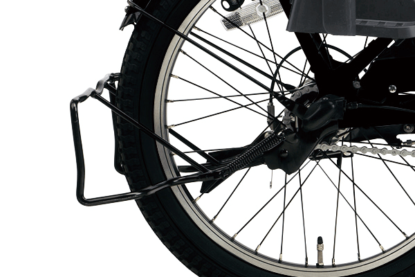 サドル下部に幅広ガードを設けることで、楽にスタンドが立てられます。