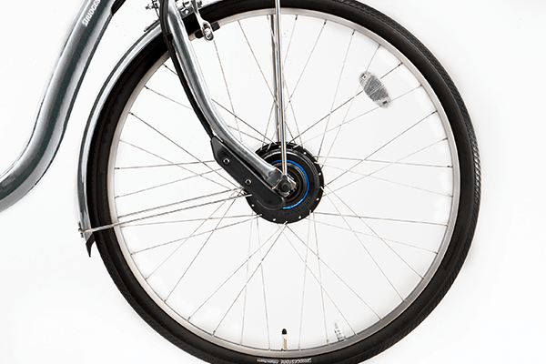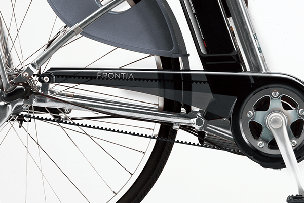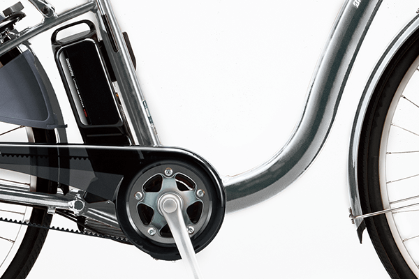 前輪はモーターによるアシスト、後輪は力がダイレクトに伝わるベルトドライブで、力強い走りを実現。