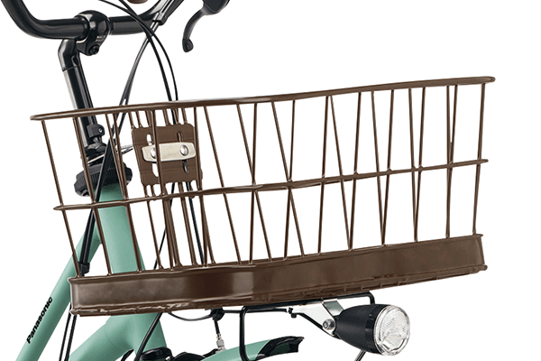 スクールバッグが収まりやい幅広バスケット。小物が落ちにくい底面メッシュ&プレートを採用しています。