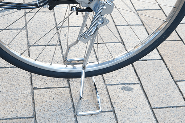 テコの原理でスタンドが軽い力で立てられることができ、女性でも扱いやすいです。