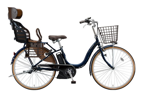 初めての電動&子供後ろ乗せ自転車です。 26インチで不安定かなと心配していましたがサドルを一番低くして乗るとそこまでぐらつきもなく慣れればしっかり運転できそうです。 オートエコで乗っていますが充電のもちも悪くなく毎日のおでかけに使っています。 モダンブルーは群青色でタイヤ内側のベージュ色やチャイルドシートの茶色にもマッチしていて気に入っています。