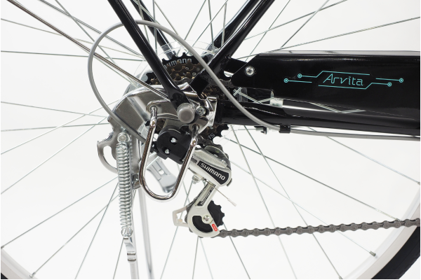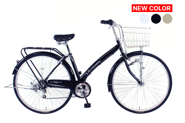 27インチタイヤと6段変速で軽快な乗り心地。珍しいフレーム形状のシティサイクル。