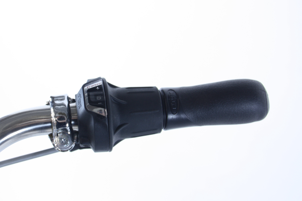 握りやすいハンドルグリップ。手元でギアチェンジが可能です。