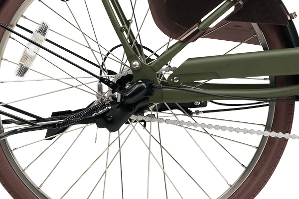 チェーン外れの心配が少なく、メンテナンスがラクな内装3段変速機を搭載。
