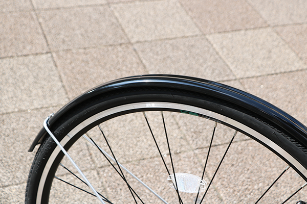 雨の日もOK!街乗りには必須の泥除けを標準装備。泥はねや水はねから服の汚れを防ぎます。