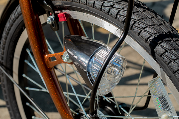 前方を明るく照らしてくれるLEDオートライトで、夜間でも安心。(丸型バスケットモデル)