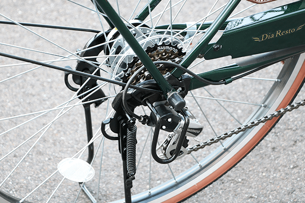 きつい坂道でもラクに走れる、信頼のシマノ6段変速を搭載。