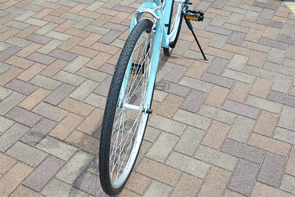 分厚めのタイヤとサドルの窪みがスポーツ車に慣れない方でも安心して走行可能に。